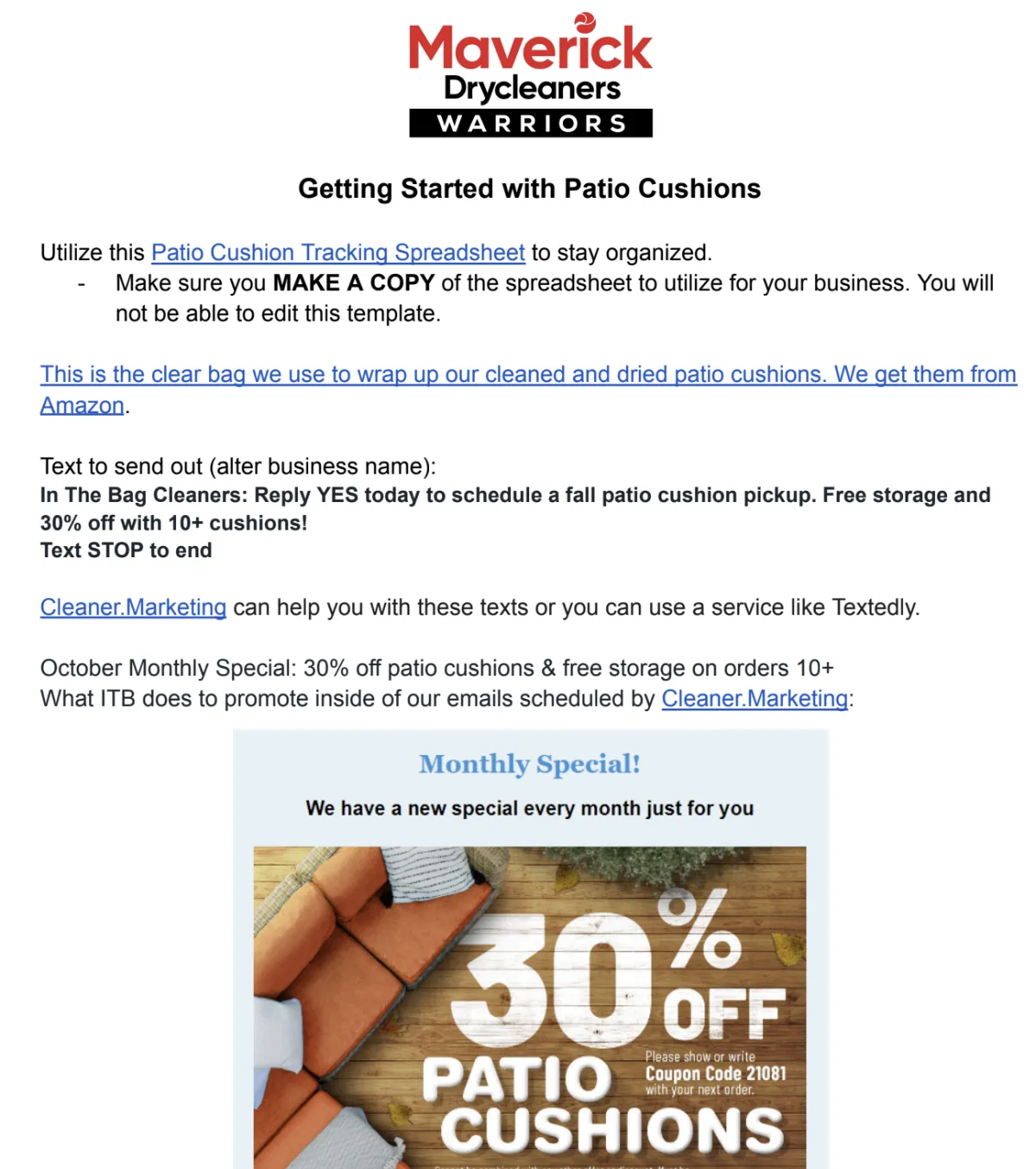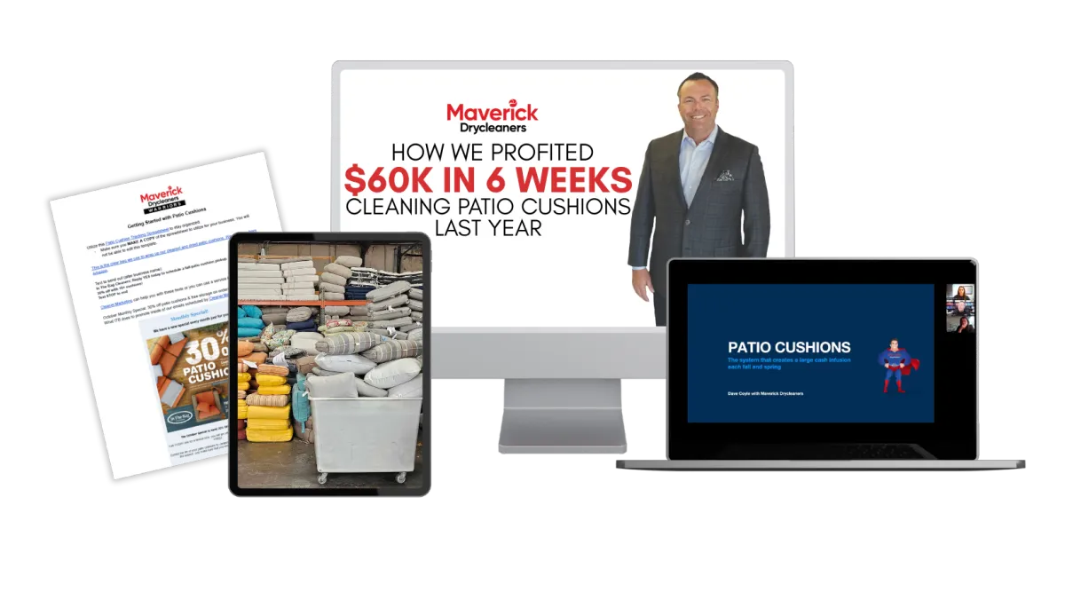 You’re getting the complete Patio Cushion Playbook we use in our own 7-figure dry cleaning operation.